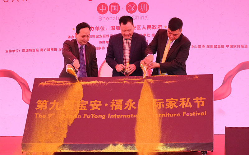 由張洪華會長等三位領導(dǎo)共同將金(jīn)沙緩緩的撒在本屆牌匾上,令“第九屆寶安·福永國際家私節”幾個大字逐漸飽滿起來,相信咱們(men)福永家私(sī)節這個品(pǐn)牌,一定會在未來創造更多的價值,就像金子一樣閃閃發光、熠熠生輝。祝賀第九屆家私節正式盛大開幕~