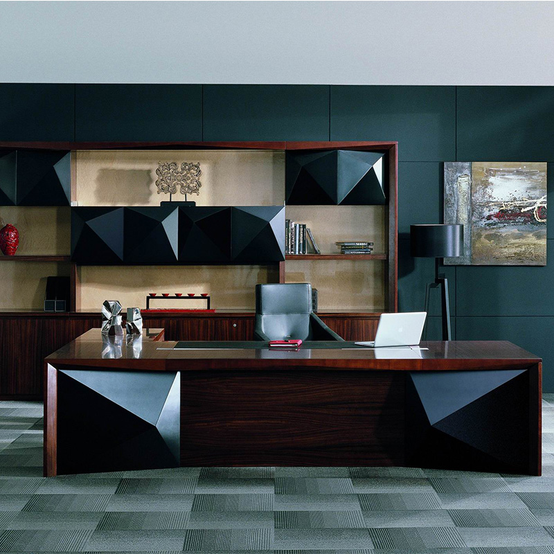 產品賣點: 台麵正麵左右兩側腳座位是以外凸鑽石麵設計,結(jié)合黑鑽油漆,流露(lù)出鑽石的晶瑩剔(tī)透,炯炯(jiǒng)有神的韻味(wèi)! 台麵邊底部是以棱角切割方式結合台腳內斜邊,更加(jiā)突顯鑽石切割的延伸(shēn)性及立體感! 台(tái)麵皮板前方有V形(xíng)槽(cáo),它是以下沉(chén)式切割向外延伸,在左右兩條V形槽之間配有20mm闊(kuò)的毛刷,方便走線太有台麵雜亂的線或過長的線可通過(guò)毛刷位擺放落去。同時在左右(yòu)兩側有梯形的翻蓋線盒,下沉式V形槽既(jì)有裝飾(shì)性同時(shí)有線功能配合銀拉絲鋁板。飾麵,外觀近似劍的形態,再顯鋒芒,更有亮(liàng)劍的氣勢! 班台在有副台的一側有收納功能,其中雙掩門(mén)外側(cè)有主機方置位,內側掩門(mén)內有全趟櫃桶,在櫃桶上方(fāng)有分(fèn)格可方辦公用品,而櫃桶側麵有推彈櫃桶內可放私人(rén)物品。 |
