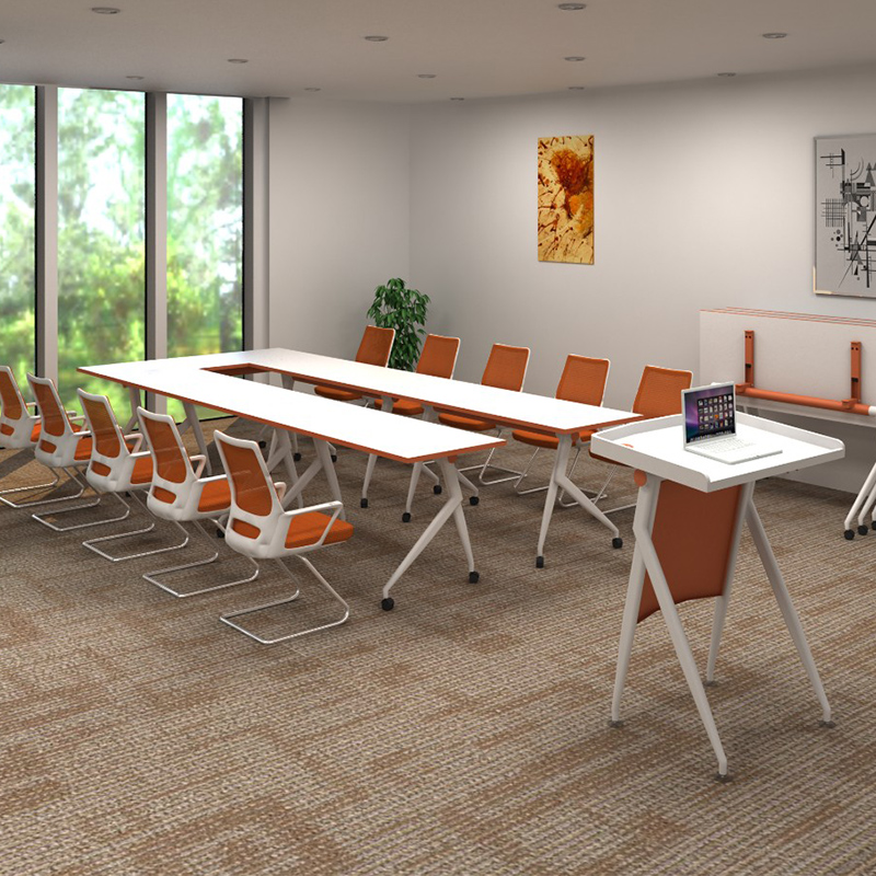 台麵:主台麵OF-0721暖白絨麵,橙(chéng)色PVC封邊,台麵 可折疊;